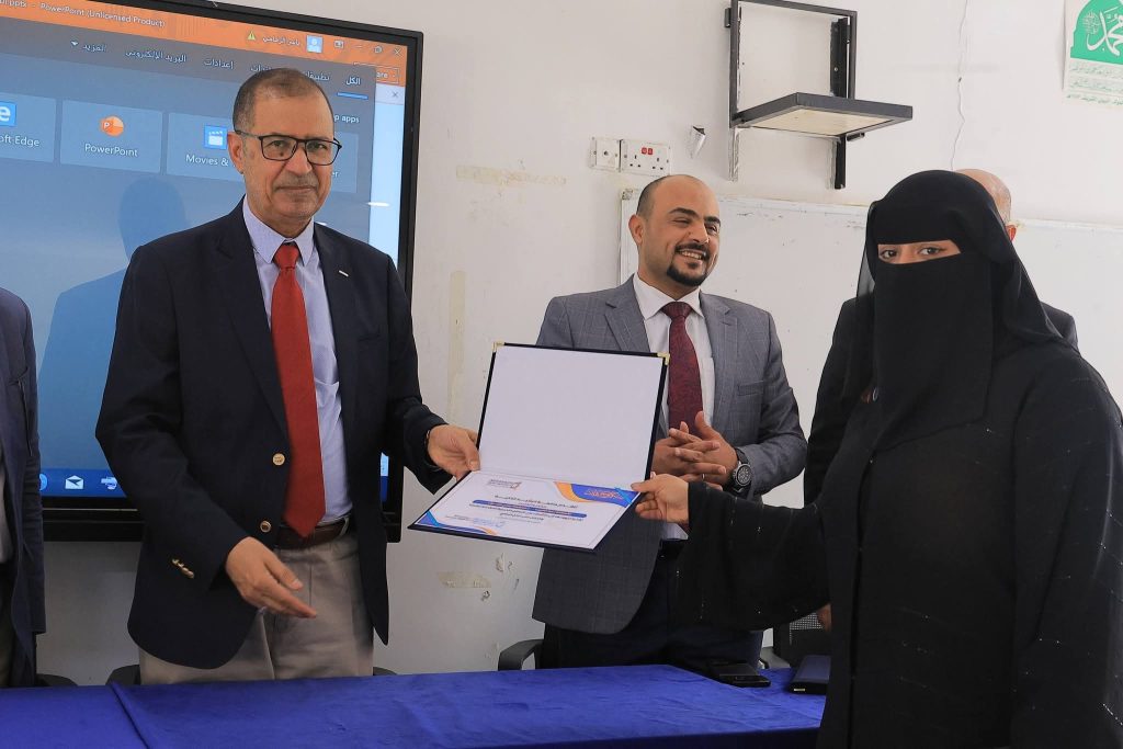 وتخللت الفعالية تكريم الفريق التنفيذي لمنصة إنجاز اليمن تقديراً لجهودهم في تنفيذ البرامج التدريبية، إلى جانب توزيع شهادات التدريب على الطلبة المتميزين، واختُتمت المناسبة بصورة جماعية جسدت روح الشراكة بين الجامعة وطلبتها في رحلة صناعة النجاح.