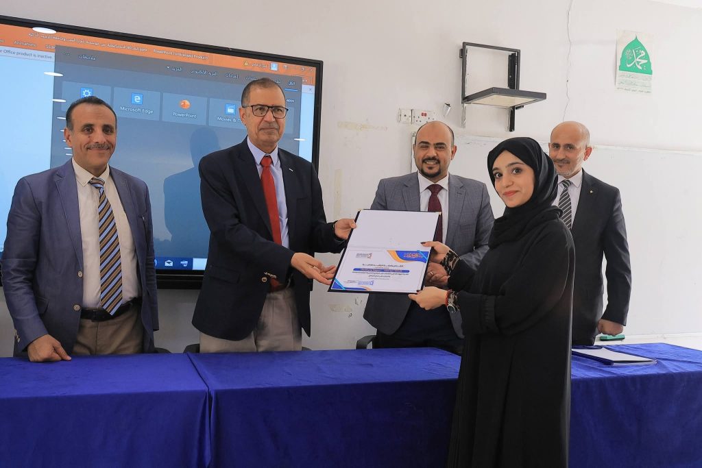 وجرى التكريم بحضور عميد مركز التطوير وضمان الجودة الأستاذ الدكتور عبدالحميد الشجاع، وعميد كلية المال والأعمال الأستاذ الدكتور عبدالخالق طواف، وعميد شؤون الطلبة الدكتور أحمد الربيعي، ومدير الأنشطة والخدمات الطلابية الأستاذ إبراهيم عزان، إلى جانب المدير التنفيذي لمنصة إنجاز اليمن الأستاذ ماجد الشميري، وعدد من القيادات الأكاديمية والطلبة المشاركين.