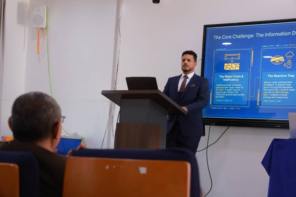 وأوضحت المجموعة الطلابية المكونة من علي العمري، سهيل الحاشدي، ومحمد عباس أن المشروع جاء استجابة للتحديات التي تواجه أنظمة الري التقليدية، وفي مقدمتها الهدر الكبير في المياه، وارتفاع استهلاك الطاقة، وضعف القدرة على التنبؤ بالتغيرات المناخية أو اكتشاف الأعطال المبكرة، مؤكدين أن النظام يوفر مراقبة وتحكمًا عن بُعد، ويتميز بقابليته للتطوير مستقبلاً عبر دمجه مع تطبيقات ذكية وبيانات الأقمار الصناعية وأنظمة الصيانة التنبؤية.
