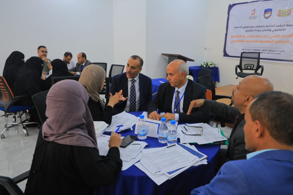 جامعة الرشيد الذكية تنظم ورشة تدريبية بالشراكة مع مجلس الاعتماد الأكاديمي لدعم إعداد دراسات التقييم الذاتي لسبعة برامج أكاديمية