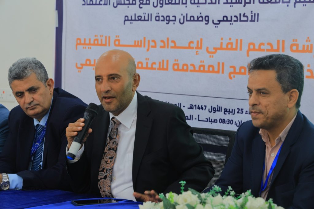 وتأتي هذه الورشة التي شارك فيها (45) من عمداء الكليات ورؤساء الأقسام وأعضاء هئية التدريس ومدراء الإدارات، وأعضاء لجان التقييم الذاتي في جلسات تفاعلية غنية بالمناقشات البنّاءة. امتدادًا للاتفاقية الموقعة مؤخرًا بين الجامعة والمجلس، وتجسيدًا لالتزام الجامعة بتطبيق أعلى معايير الجودة.