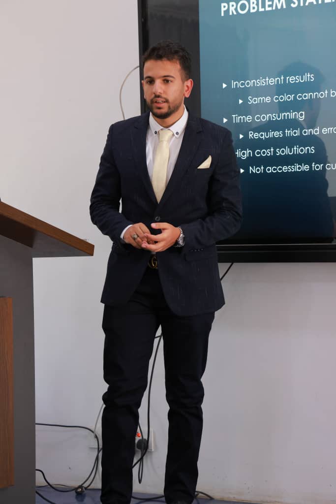 ويقدم المشروع نظامًا متطورًا لمزج الألوان يعتمد على خمسة ألوان أساسية لإنتاج اللون المطلوب بدقة عالية، مع توليد الكود اللوني تلقائيًا، بما يحد من الأخطاء الناتجة عن المزج اليدوي ويضمن تكرار النتائج بنفس الجودة.