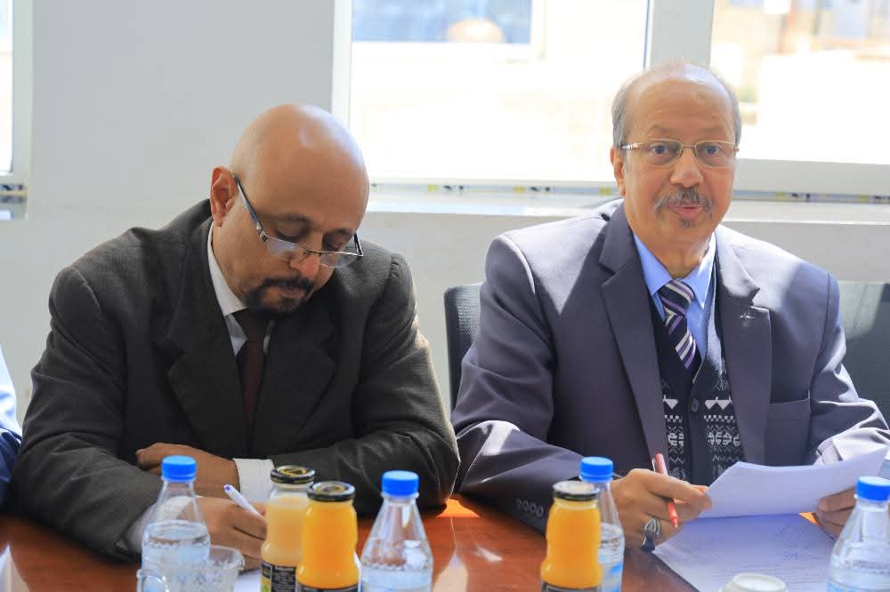 The meeting was chaired by Professor Abdul Lateef Haidar, The rector of the University, alongside Board of Trustees member Professor Mansour Al-Abdi, the Dean of Student Affairs, the Dean of Development and Quality Assurance Center, and the Deans and Heads of Academic Departments, in addition to Dr. Samir Al-Rumaima, Head of the Scientific Research Unit, Mr. Khalid Ali Al-Khidr, Secretary-General of the university, and Mr. Qa'id Al-Jaafiri, the Registrar.
