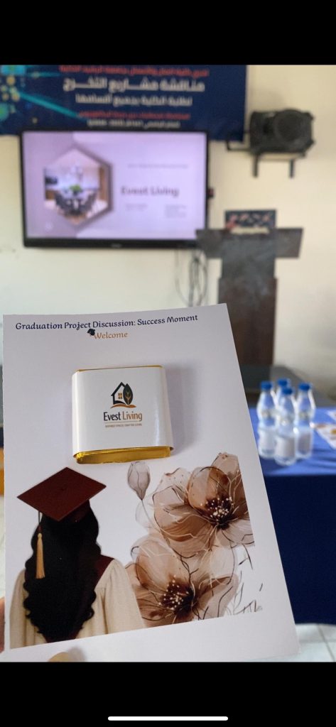 وقدّم فريق المشروع، المكوّن من الطالبات: نادية محمد عقلان، خلود أحمد العامري، ونُسيبة محمد الشرفي، عرضًا احترافيًا متكاملًا استعرضن فيه فكرة المشروع وأهدافه ودراسته التسويقية والمالية، مؤكدات أن “EVEST LIVING” منصة متخصصة في خدمات التجديد والتصميم الداخلي، تهدف إلى تحويل المساحات السكنية إلى بيئات عصرية ومريحة، عبر حلول مبتكرة تلبي احتياجات مختلف شرائح العملاء، وفق أسس مدروسة تجمع بين الجودة والاستدامة والجدوى الاقتصادية.
